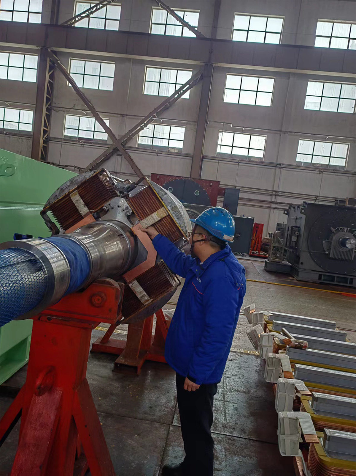 行遠(yuǎn)自邇,篤行不怠。設(shè)計(jì)部同步機(jī)室王洪彬積極配合正壓外殼型無(wú)刷勵(lì)磁同步電動(dòng)機(jī)TZYW5700-4/1730新產(chǎn)品制造的關(guān)鍵工序工作,為高質(zhì)量完成新產(chǎn)品交付提供了強(qiáng)有力的保障。