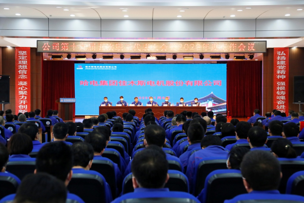 1月8日,哈爾濱電氣集團佳木斯電機股份有限公司(佳木斯電機廠有限責任公司)召開了第十九屆五次職工代表大會暨2023年度工作會議。大會以習近平新時代中國特色社會主義思想為指導,深入學習宣傳貫徹黨的二十大精神,貫徹落實哈電集團黨委一屆七次全會和哈電集團一屆五次職代會精神,表彰先進,全面總結(jié)2022年度工作,分析研判公司當前面臨的形勢,安排部署2023年重點工作,凝聚發(fā)展共識,奮力開啟佳電股份高質(zhì)量發(fā)展新征程。會議由佳電股份黨委副書記、工會主席劉漢成主持。佳電股份領(lǐng)導班子成員及201名職工代表參加會議。