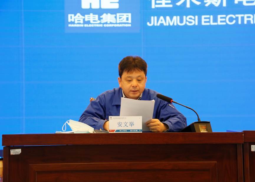 副總經(jīng)理安文舉宣讀了《哈爾濱電氣集團(tuán)佳木斯電機(jī)股份有限公司關(guān)于2020年科技工作表彰獎(jiǎng)勵(lì)的決定》,表彰了為公司科技事業(yè)做出突出貢獻(xiàn)的先進(jìn)集體和先進(jìn)個(gè)人,并為獲獎(jiǎng)代表頒獎(jiǎng)。