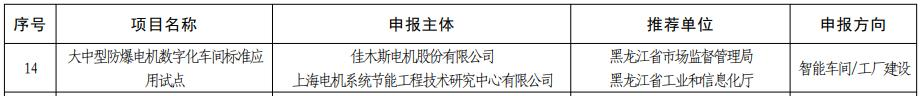 近日,國家標(biāo)準(zhǔn)化管理委員會(huì)、工業(yè)和信息化部公布了國家智能制造標(biāo)準(zhǔn)應(yīng)用試點(diǎn)項(xiàng)目名單。 哈電集團(tuán)佳電股份《大中型防爆電機(jī)數(shù)字化車間標(biāo)準(zhǔn)應(yīng)用試點(diǎn)》在全國眾多智能制造標(biāo)準(zhǔn)應(yīng)用試點(diǎn)項(xiàng)目的激烈角逐中勝出,順利通過國家組織的形式審查和專家論證以及公開征求意見,...
